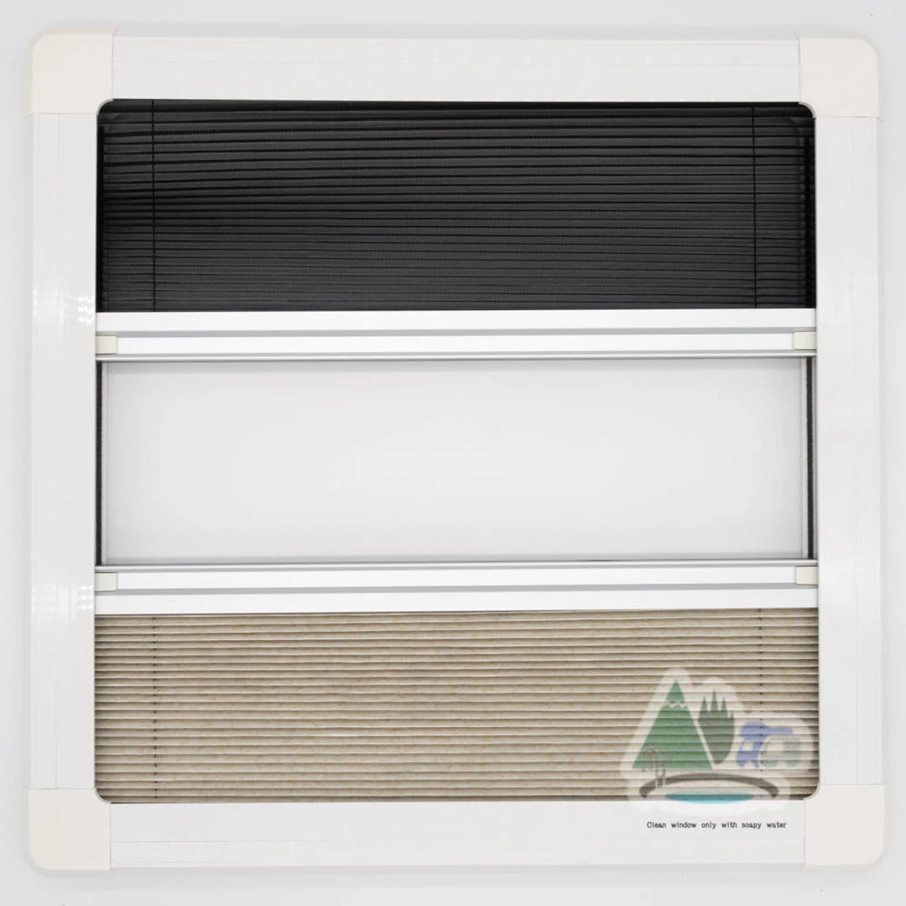 Two sliding blinds fit inside the inner window frame, giving you fully adjustable control the light and heat entering your motorhome or campervan. The blind features a reflective lining to insulate your van from extreme temperatures, and the mesh flyscreen keeps unwanted pests from entering your campervan or motorhome while allowing ventilation.