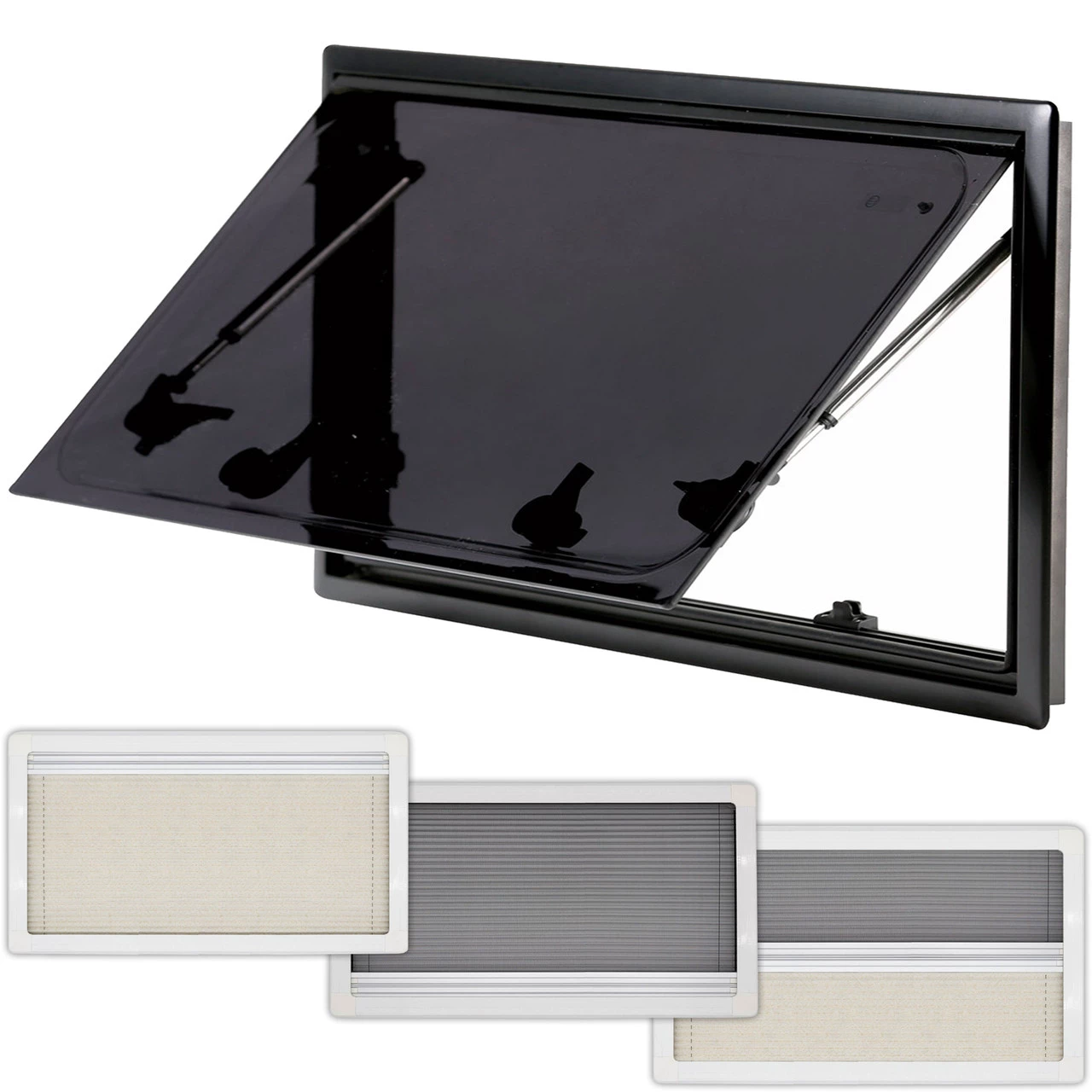 Campervan Window with Top Hinge, Blinds & Flyscreen – Flush Glass