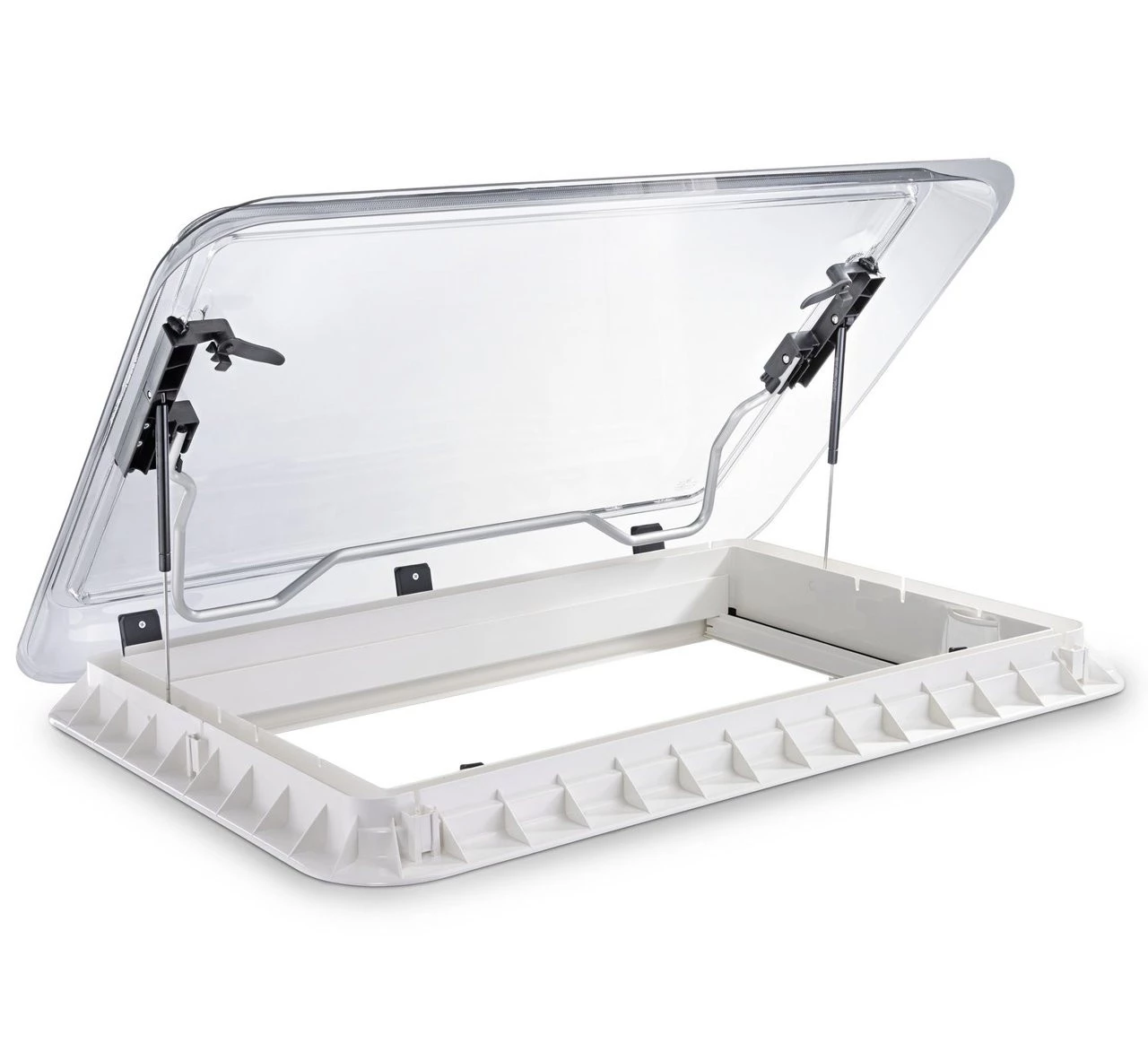 Built from a robust and weather proof ASA developed especially for caravans and motorhomes, the Dometic Seitz Heki 2 Roof Light features a large opening which accommodates for plenty of light and optimal ventilation. The Dometic Seitz Heki 2 Caravan & Motorhome Roof Light also features a double glazed acrylic panel which is easily opened via the metal bar handle whilst the pane is held open by pneumatic stays for your comfort.