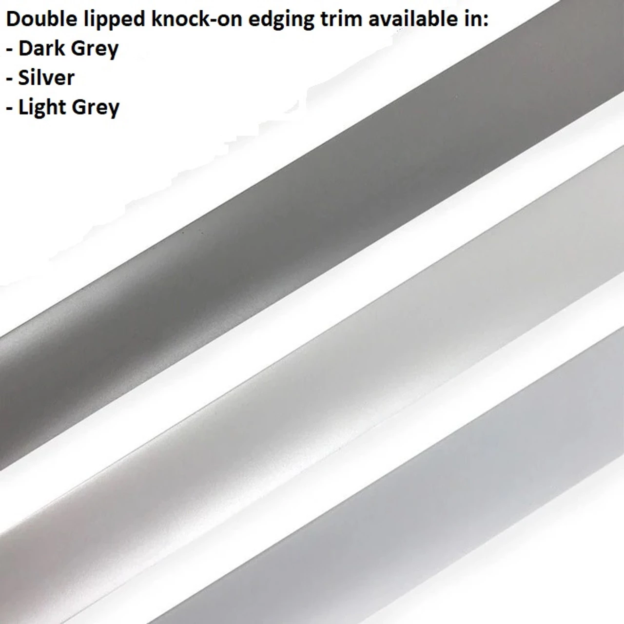 Double lipped edging trim to finish the cut edges of 15mm lightweight ply furniture board. Ideal for the edges of table tops and counters in campervans.