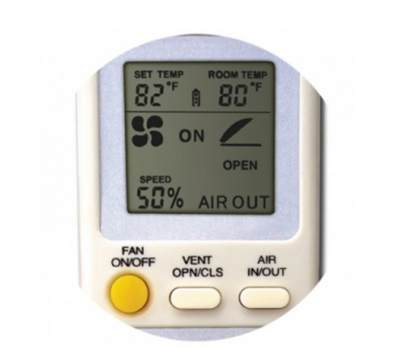 - Remote Keypad controls fan speed, thermostat, and air intake and exhaust functions.
