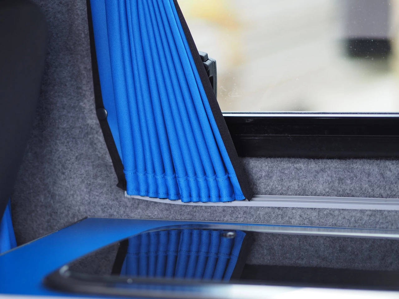 Our premium campervan curtains are custom made to fit Volkswagen T5 vans. These blackout curtains are perfect for protecting your privacy but also help keep your van secure. The curtains are made from a heavy weight, double lined, luxurious fabric, which are 100% black out perfect for your camping road trip.