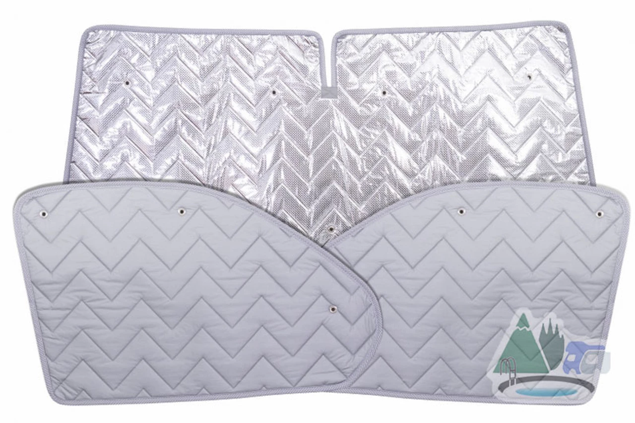 Our thermal blinds use a 7 layer system of mattresses and fibers, which trap heat inside your vehicle. Windows are a major source of heat loss from vehicles in winter, and this cab set of thermal blinds helps to lock it in.
